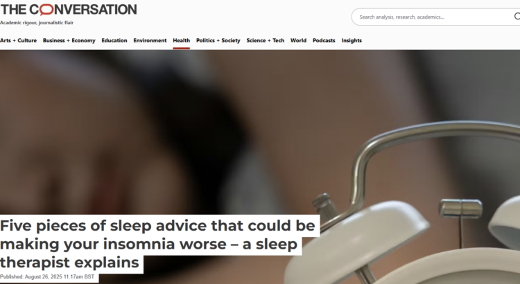 The Conversation has recently published an article written by Kirsty Vant, a sleep therapist and doctoral researcher in our lab. Kirsty highlighted how standard and widely recommended sleep hygiene advice can often backfire, particularly for those with chronic insomnia. You can read the full article here: https://theconversation.com/five-pieces-of-sleep-advice-that-could-be-making-your-insomnia-worse-a-sleep-therapist-explains-261682.